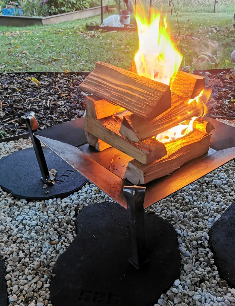 Der Grill kann ohne Platte als stimmungsvolle Feuerschale verwendet werden, ideal zum Grillen in angenehmer Höhe, ohne den Rasen zu verschmoren oder mit Asche zu beschmutzen. Passende Stecken für Steckerlbrot, Mais oder Spieße für Steckerlfisch sind ebenfalls bei uns erhältlich.